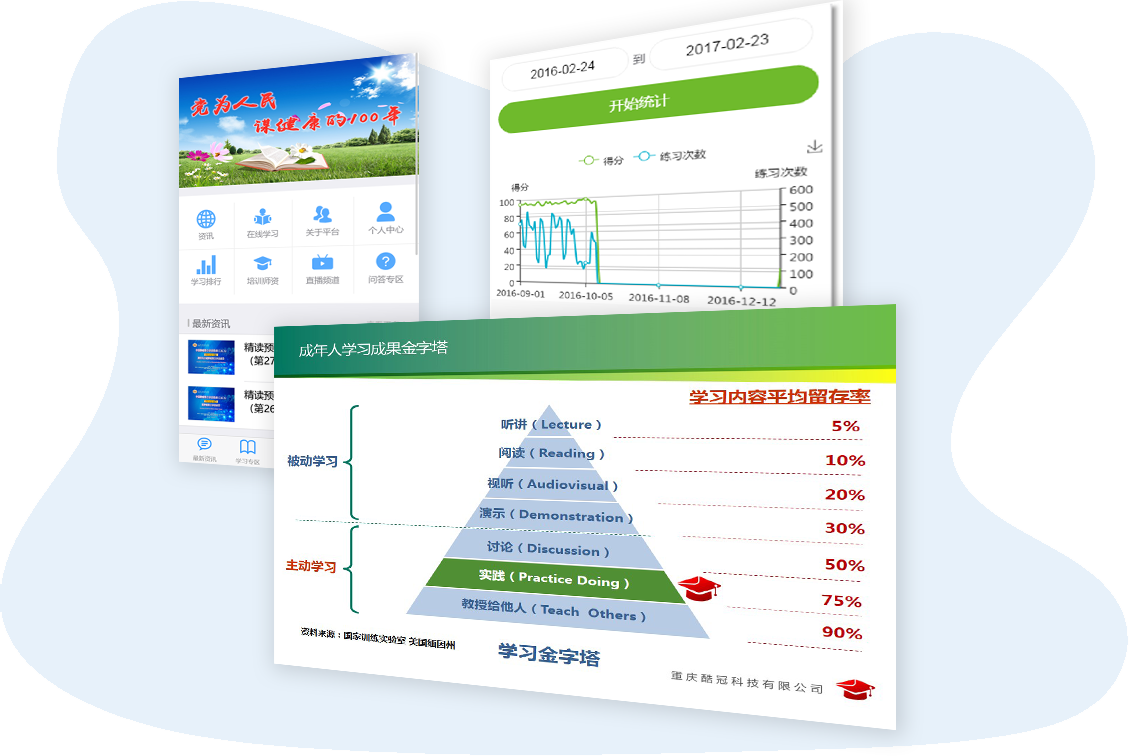 • 基于移動端的在線培訓和學習,利用碎片時間進行培訓,形成培訓記錄。